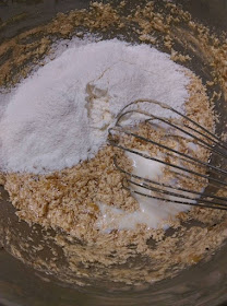 - 加入黑糖及細砂糖攪拌均勻