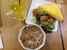 今日叫Peggy 帶我&敏婷去試另一素食店,這家真的較國際化,食物有中
